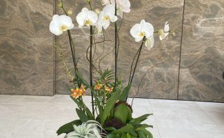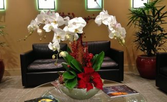 Colorful, custom arrangements using orchids, bromeliads, and other exquisite flowering plants bring a touch of elegance to your office. Our color program offers our clients an affordable way to have beautiful arrangements year-round for an easy monthly fee.